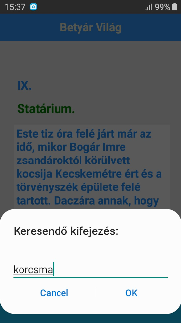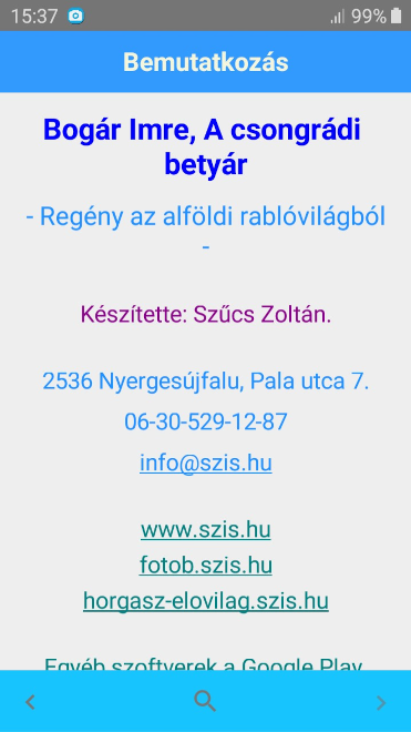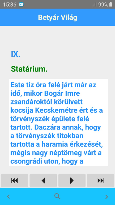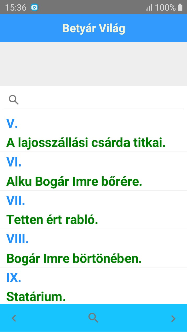 A magyar útonálló, betyár világot bemutató regény alkalmazás formájában. Jól áttekinthető, esztétikus formátum, teljes körű keresési lehetőséggel.